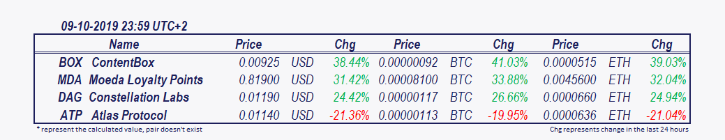 Top mover of the day at 18:10 is ContentBox which has surged 19.26% since 1 pm. Moeda Loyalty Points has increased by 7.80% while Nucleus Vision has decreased by 0.56%. In the afternoon the crypto markets were still going down. 2100NEWS DA Indexes which measure the performance of different groups of tokens and coins fell between 0.08% and 1.63%. Bitcoin and Ether are also lower: BTC -0.47%, ETH -0.79% (as of 1 pm).