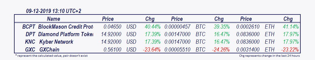 Tokens and coins that moved the most in the last 24 hours: