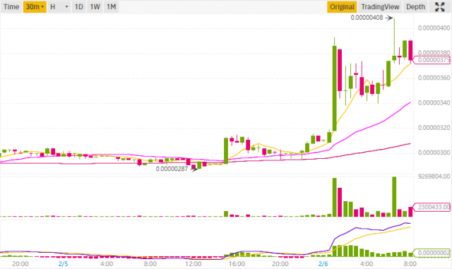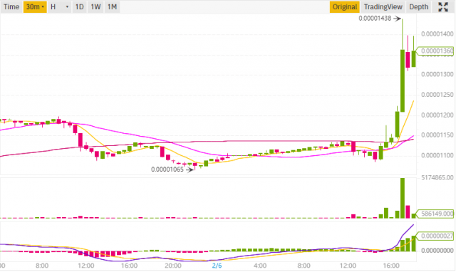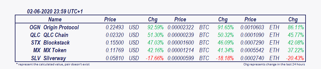 Top movers of the day are Origin Protocol and QLC Chain. Since 6 pm Origin Protocol has soared 28.81% and QLC Chain 39.30%. Blockstack has increased by 17.25% and MX Token by 9.45%.