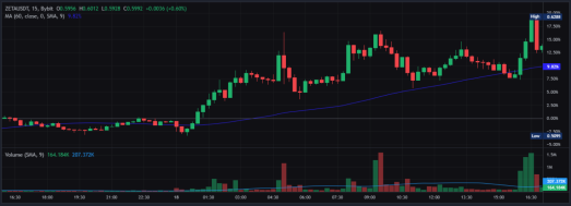 - ZetaChain has increased by 6.34% since 2 p.m.
