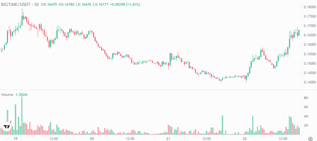 7:10 p.m. update: Top movers of the day are Big Time and Automata Network. Since 2 pm Big Time has increased by 7.60%, Automata Network is 8.65% higher.