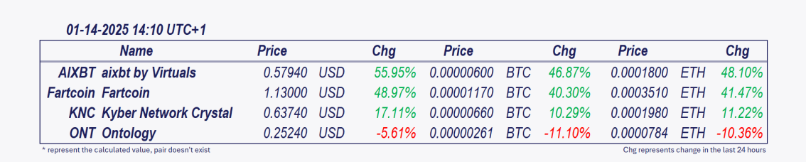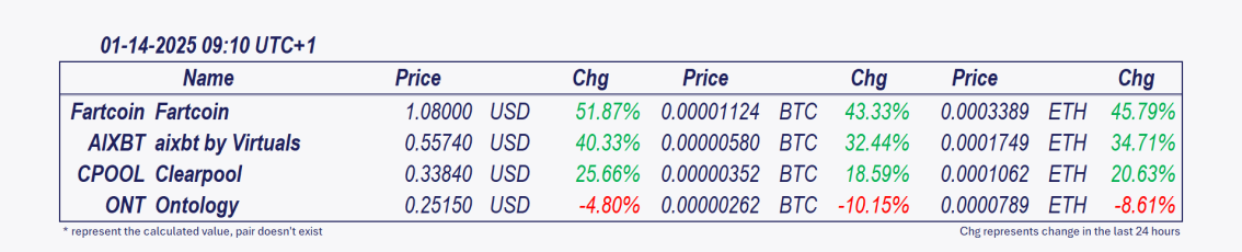 • Fartcoin and aixbt by Virtuals: These cryptocurrencies have grown remarkably over the past 24 hours.