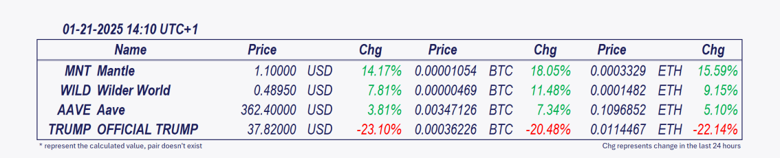 - Mantle and Wilder World: These cryptocurrencies have grown remarkably over the past 24 hours, with Wilder World rising by 12.50% since the morning update.