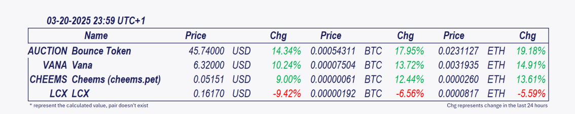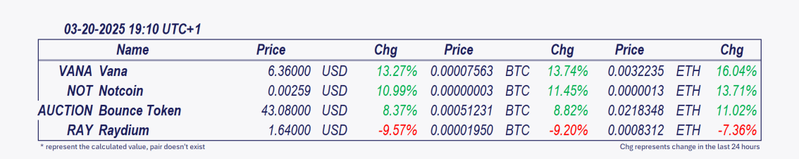 • Bounce Token and Vana: These cryptocurrencies have grown remarkably over the past day.