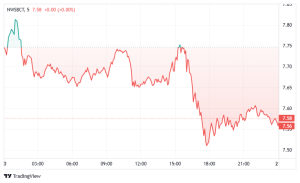 1. NWSBCT Index for Blue Chips: Focusing on the more established cryptocurrencies, colloquially known as the “Blue Chips”. The index has tracked the broader market’s movements. ✔ Early bullish momentum was erased by late-day selling pressure. ✔ Support around 7.55 is being tested; further declines could lower the index.