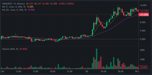 • Vana has risen by 12.12% since midnight.