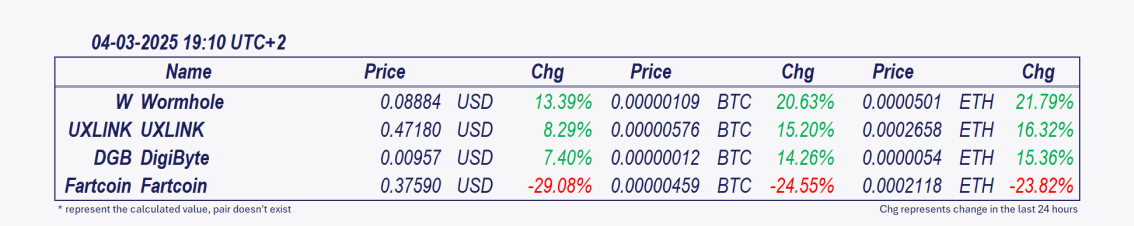 Tokens and coins that moved the most in the last 24 hours:
