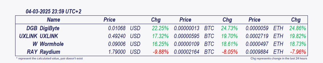 🌙 00:00 CET – Daily Wrap-Up: RAY DigiByte Rallies as Market Ends in Red – Top Movers of the Day
