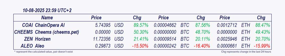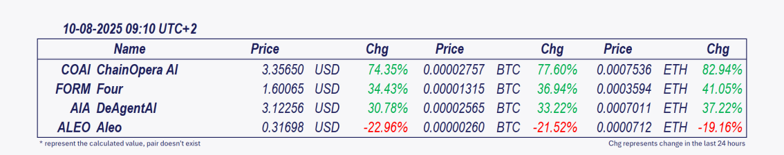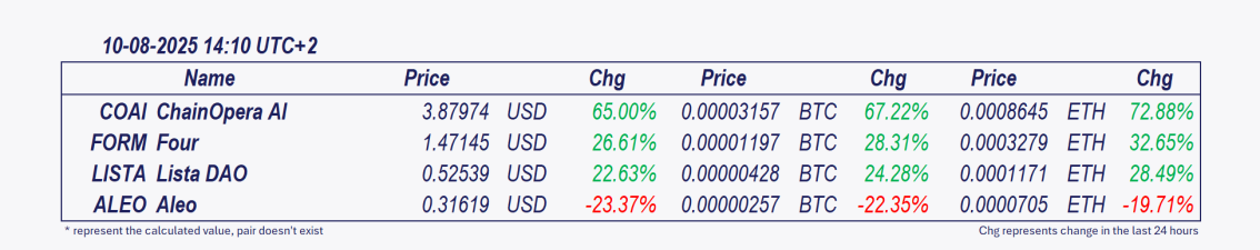 - ChainOpera AI and Four: These cryptocurrencies have experienced significant growth over the past 24 hours.