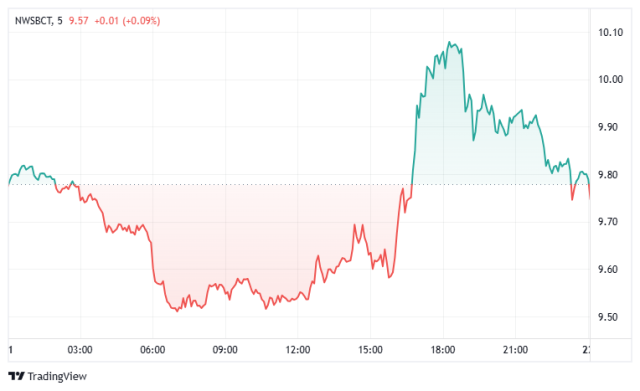 NWSBCT (Blue Chips Index): The NWSBCT index has shown extreme volatility. After dipping to lows near 9.58, it staged a powerful rally, breaking through resistance to reach a peak near 10.02. A subsequent pullback found support around the 9.90 area, and the index is currently showing a strong recovery towards the end of the session, trading near 9.94.