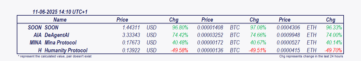 • SOON and DeAgentAI which has surged 63.76% since 9 am. SOON has increased by 2.82%.