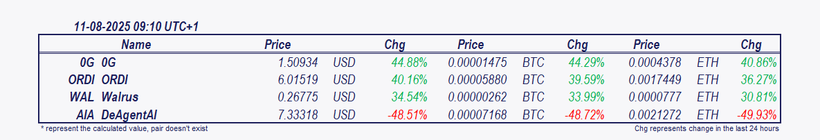 • 0G and Walrus: Since midnight 0G has surged 36.54%, Walrus is 34.27% higher.