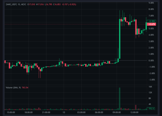 - Zano has increased by 5.03% since the morning update. đĄZanoâs 24h rally reflects sector rotation into privacy assets and concrete progress toward real-world spending utility. While technicals favor bulls, watch for profit-taking near $16.9 resistance. Key watch: Confirmation of Zebec Silver Card launch timelines and trading volume sustainability above $3.1M (current 24h: $3.1M).