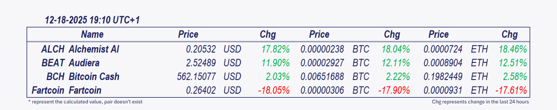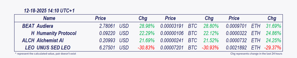 • Audiera and Alchemist AI: These cryptocurrencies have been the best performers over the past 24 hours.