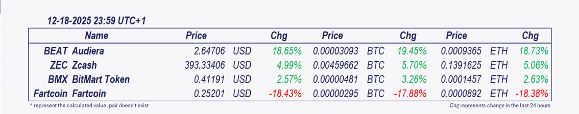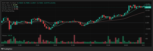 • Zcash and Audiera: These cryptocurrencies have delivered explosive performance over the past day, with Audiera increasing by 4.84% since the 7 p.m. update, leading late-session gains. 💡BEAT’s rally combines AI-driven fundamentals with speculative derivatives activity, though thin liquidity ($106M 24h volume vs. $430M market cap) raises volatility risks. Key watch: Can BEAT hold $2.66 support, or will profit-taking at $2.87–$3.00 reverse gains? Monitor burn metrics and BTC correlation for directional cues.