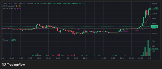 - Turbo and Four: These cryptocurrencies have been the best performers over the past 24 hours, with Turbo posting the most significant intraday gain since midnight, surging 23.16%. đĄTURBOâs 24h gain reflects a technical bounce amid memecoin sector rotation, though longer-term bearish trends (-57% YTD) persist. Key watch: Can TURBO hold above $0.00165 (Fibonacci support) to avoid retesting its 2025 low of $0.001325?