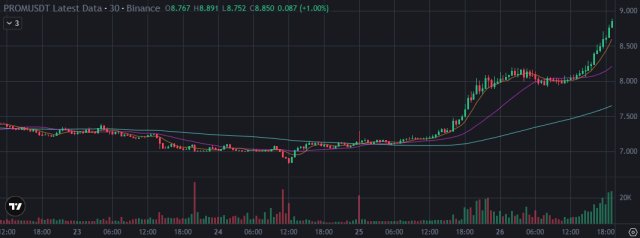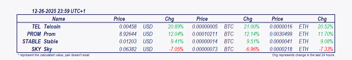• Telcoin and Prom: Since 7 pm Telcoin has surged 19.77%, Prom has increased by 2.07%.