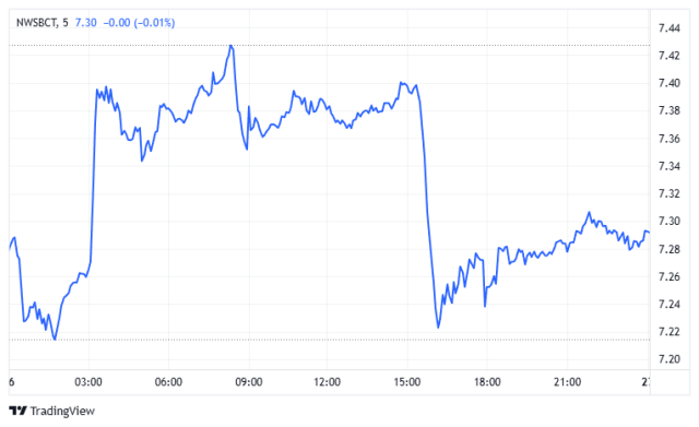 NWSBCT (Blue Chips Index): The graph depicts a volatile session with distinct phases: a vertical surge in the morning, a sharp reversal in the afternoon, and a subsequent recovery. Following the drop to the 7.22 area, the index established a pattern of higher lows, grinding upward to recoup a portion of the losses. It ends the day consolidating in the middle of the day’s expanded trading range.