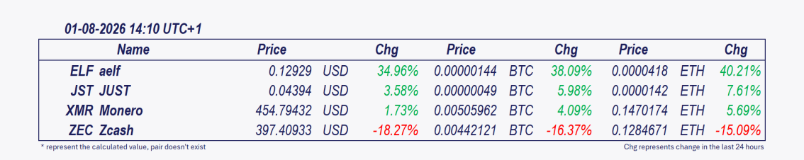 - JUST and aelf: These cryptocurrencies have been the best performers over the past 24 hours.