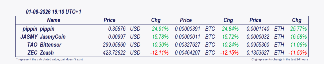 - JasmyCoin and pippin: These cryptocurrencies have delivered explosive performance over the past day.