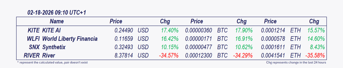 • KITE AI and World Liberty Financial: These cryptocurrencies have been the best performers over the past 24 hours.