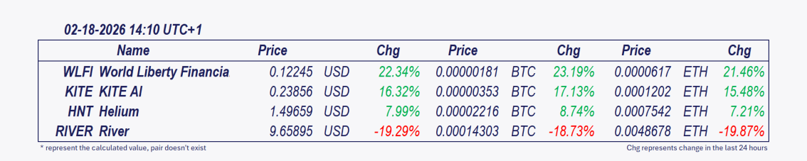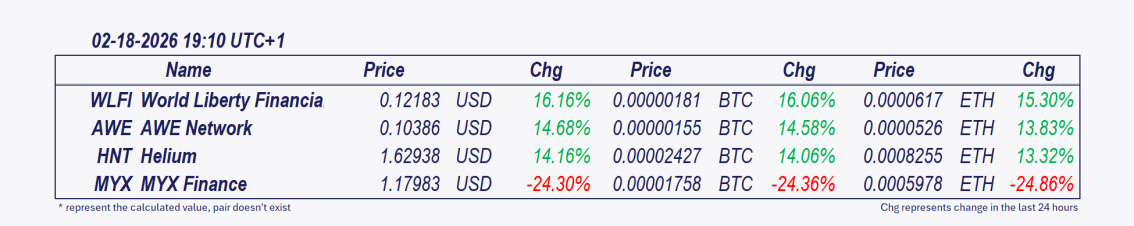 • AWE Network and World Liberty Financial have been the best performers over the past 24 hours.