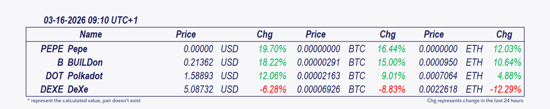 - Pepe and BUILDon: These cryptocurrencies have been the best performers over the past 24 hours, with BUILDon posting the crypto market’s most significant intraday gain since midnight, rising 17.68%. 💡Bullish Momentum (High Risk) BUILDon is riding a powerful wave of memecoin speculation, detached from its own fundamentals. While the trend is up, its reliance on sector-wide sentiment makes it fragile. Key watch: Can Bitcoin’s stability above $73k provide a lasting floor for altcoin speculation, or will profit-taking emerge first?