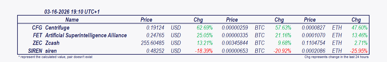- Artificial Superintelligence Alliance and Zcash: Since 2 pm Artificial Superintelligence Alliance has increased by 10.83%, Zcash by 10.80%.