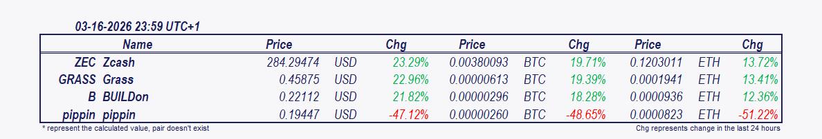- Zcash and Grass which has surged 19.01% since 7 pm. Zcash is 11.22% higher.
