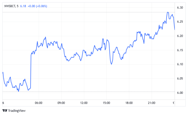 - NWSBCT Index for Blue Chips: The real-time tradable benchmark NWSBCT (investable replication of the broad market using a blue-chip subset), commonly referred to as the “Blue Chips”. The daily chart shows the NWSBCT index climbed toward 7.08 before stabilizing near 7.00.📍 As of 9:00 CET, it is trading around 7.04.