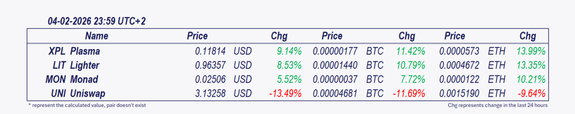 • Plasma and Loghter: These cryptocurrencies have delivered explosive performance over the past day.
