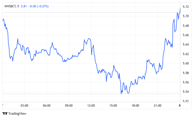 NWSBCT (Blue Chips Index): The NWSBCT index showcased a classic technical reversal today. After breaking down from the 5.66 level and plunging to a critical support floor near 5.54 in the afternoon, the index staged a massive recovery. The late-evening session saw a near-vertical breakout that sliced through the 5.70 resistance, eventually reaching a daily high of 5.72. The ability to reclaim the 5.70 handle so decisively marks a significant shift in intraday momentum.