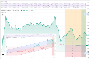 2. NWSBCT Index for Blue Chips: The real-time tradable benchmark NWSBCT (investable replication of the broad market using a blue-chip subset), commonly referred to as the “Blue Chips”. The daily chart shows a sharp regime shift driven by an external catalyst. The move aligns with a macro-driven catalyst (US–Iran ceasefire), which triggered a global risk-on reaction. After the spike, the price stabilized in the upper range (~6.80), forming a tight consolidation near highs, not retracing deeply.📍 As of 9:00 CET, it is trading around 6.80.