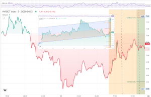 2. NWSBCT Index for Blue Chips: The real-time tradable benchmark NWSBCT (investable replication of the broad market using a blue-chip subset), commonly referred to as the “Blue Chips”. The daily chart shows a clear loss of short-term momentum, with price rotating lower.📍 As of 9:00 CET, it is trading around 6.99.
