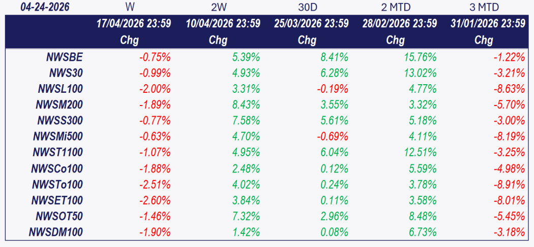 ✔ NWSL100 (Large Caps) and NWSCo100 (Coins) lagged.