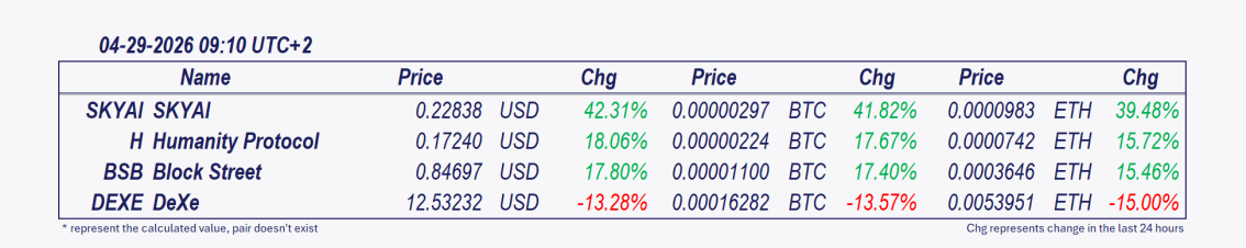 - Humanity Protocol and SKYAI have been the best performers over the past 24 hours, with SKYAI posting the crypto market’s most significant intraday gain since midnight, advancing 9.40%. 💡Bullish Momentum (High Risk) The price surge is a classic example of a leverage-fueled pump, amplified by social media narratives. While momentum is strong, the foundation is thin. Key watch: Monitor whether the 24h trading volume remains above $30 million to confirm sustained interest, or if it rapidly declines, signaling a speculative exit.